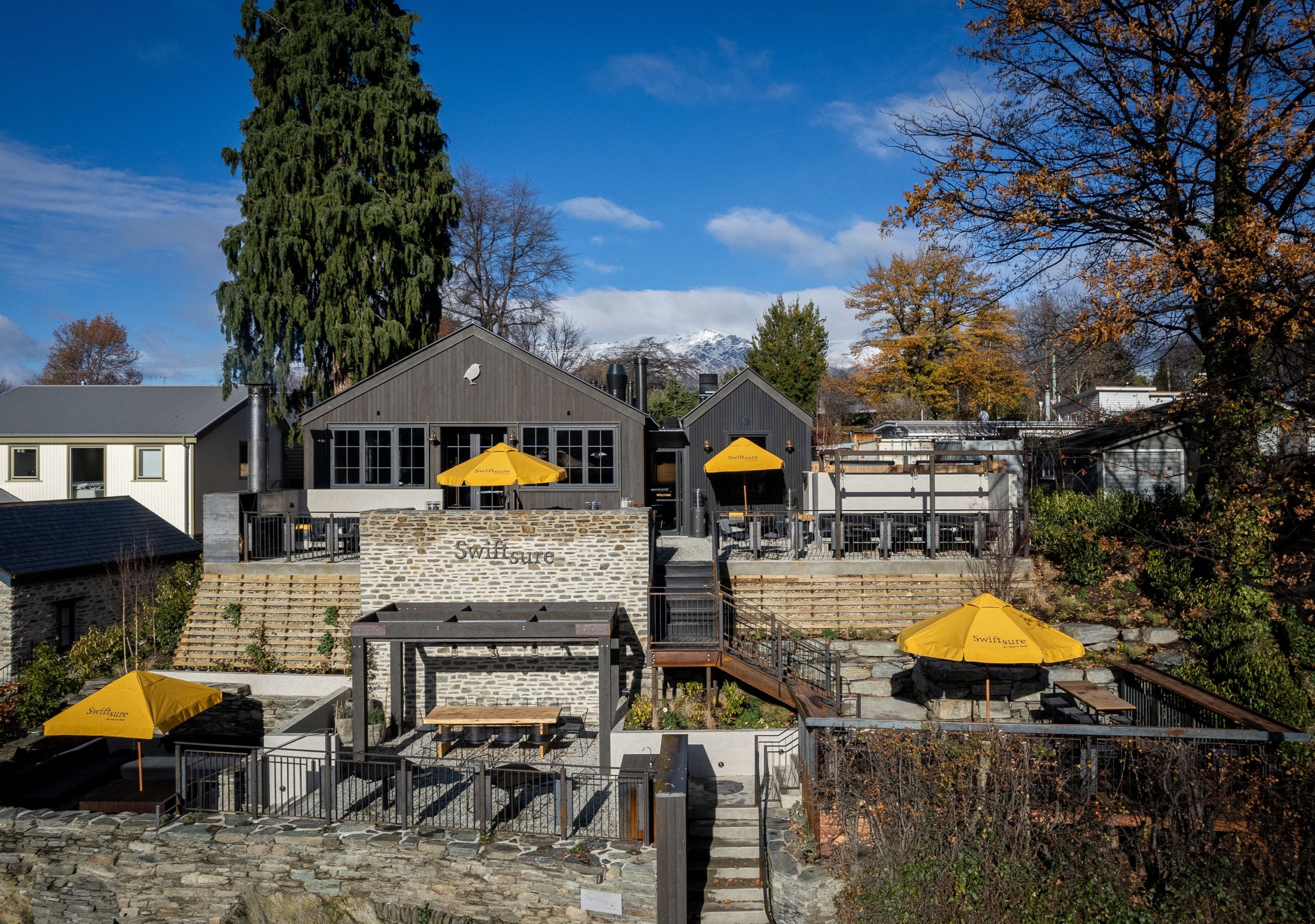 Uniquely located above Buckingham Green, with sweeping views of picturesque Arrowtown and the surrounding peaks, Swiftsure is for long lunches, late glasses, and reliving the days adventures.